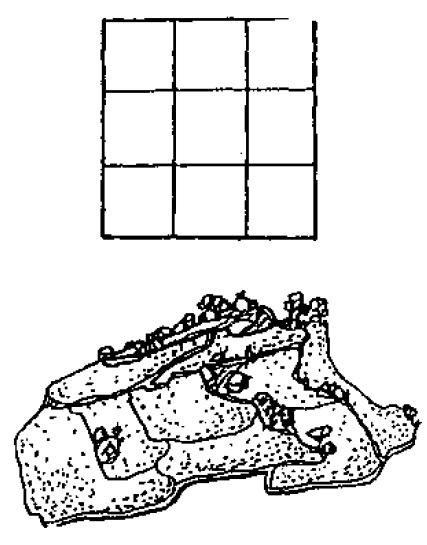 假使以同样的设计组织美国,则密歇根湖岸所有不规则之处即可以全部忽略不计。我们可以假设它之整饬有如怀俄明州的州界般整齐。在那种理想的方式里,纵使实际上国都偏东,我们仍可以将它与哥伦比亚区同置于地理的中心,很方便的与缅因、佛罗里达、俄勒冈、得克萨斯及亚利桑那各州等距离,就算它各为1500英里吧。国都又务必有近接的各州环绕,那么也可以让马里兰州直接与俄亥俄州接壤。这还不算,各州内的县、乡、镇,也算全部方整。实际上如此砖砌的设计不可能全部认真的付诸实施,只是当日地广人稀,有些矛盾的地方也可以马虎不计。上层领导人只凭一种抽象观念即可以将全部人众组织起来。